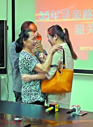 當(dāng)湖北女子何女士風(fēng)塵仆仆地從東莞趕到韶關(guān)時(shí),她仍有些不敢相信自己和離別35年的親生父母就要相見;貞浧鸶改福骸拔抑挥浀冒职謰寢尪奸L的很高!边@是父母留在她幼小的腦海里唯一的印象。
