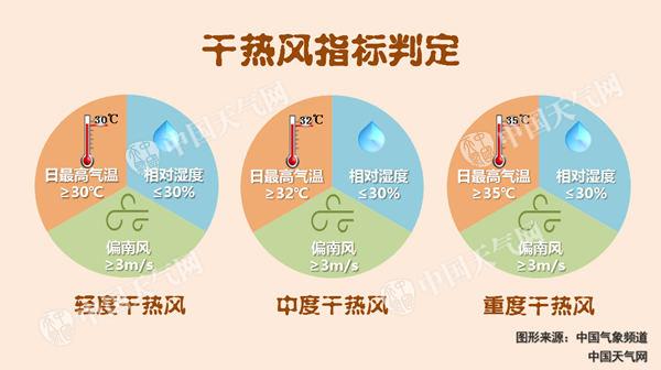 此外,目前華北、黃淮冬小麥正處于開花授粉和灌漿的產(chǎn)量形成關(guān)鍵階段,中央氣象臺預(yù)計,17日至19日北京、天津、河北、河南、山西、山東北部等地持續(xù)晴熱,最高氣溫普遍可達(dá)32℃以上,空氣相對濕度小,午后風(fēng)力一般大于3米/秒,加之部分地區(qū)土壤墑情偏差,冬麥區(qū)將出現(xiàn)“干熱風(fēng)”天氣。其中,18日至19日,河北中南部、河南北部部分地區(qū)最高氣溫可達(dá)37℃左右,將出現(xiàn)中到重度“干熱風(fēng)”天氣,對冬小麥灌漿不利,將導(dǎo)致冬小麥灌漿速率下降,降低籽粒重量。農(nóng)民朋友需及時做好水肥管理,做好“一噴三防”工作,增加小麥抗衰能力;墑情偏差地區(qū)及時灌溉,改善田間溫濕條件,避免或減輕干熱風(fēng)危害。