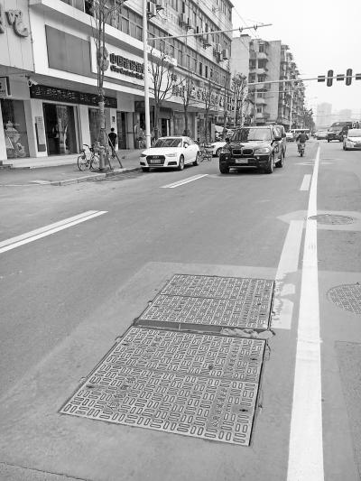 昨天上午,記者根據(jù)來電線索,在漢陽(yáng)大道532號(hào)花前樹下小區(qū)門口,看到了公交車專道上那幾個(gè)令王先生等居民鬧心的窨井蓋。只要有車子碾過,窨井蓋就會(huì)發(fā)出巨大的響聲。