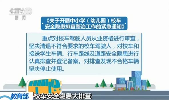 《通知》要求,重點對校車駕駛?cè)藛T從業(yè)資格進行審查,堅決清退不符合要求的校車駕駛?cè),對校車和接送學生車輛、行車路線及道路安全隱患進行認真排查并登記備案。對排查發(fā)現(xiàn)不合格車輛堅決停止使用。