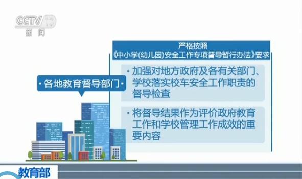 同時,各地教育督導部門要嚴格按照《中小學(幼兒園)安全工作專項督導暫行辦法》的要求,加強對地方政府及各有關部門、學校落實校車安全工作職責的督導檢查。將督導結(jié)果作為評價政府教育工作和學校管理工作成效的重要內(nèi)容。