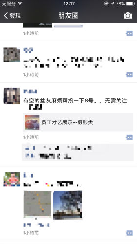 伴隨著微信朋友圈的出現(xiàn),它不僅成為了維系友情的紐帶,也成為某些人得名、發(fā)財之工具。繼代購圈、微商圈、集贊圈后,又變成了“拉票”圈。一天到晚,各式各樣的“投票求助”“點贊求助”爆屏。有的是為了自家寶寶拉票,有的是為了幫助好友拉票,什么舞蹈大賽、最美親子照、繪畫作品展等等不一而足。