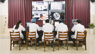 2月9日,在安徽省天長(zhǎng)市人民醫(yī)院,醫(yī)生與醫(yī)共體成員單位進(jìn)行遠(yuǎn)程會(huì)診。新華社記者 張 端攝