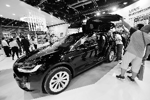 特斯拉參加北京國際服務(wù)貿(mào)易交易會展出。