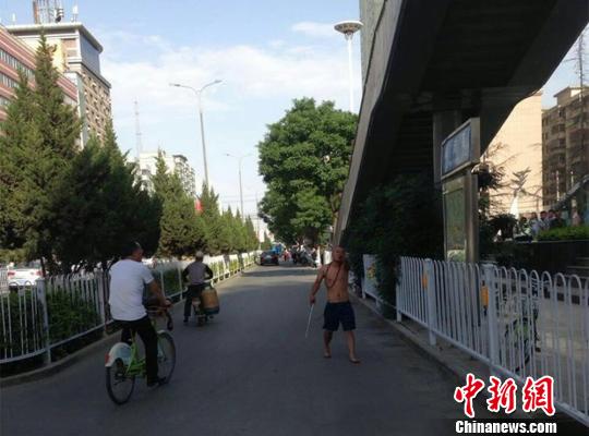 所幸姜警官躲閃及時(shí),男子未得逞后離開。半小時(shí)后,該男子手持鐵棍再次來到現(xiàn)場(chǎng),公然向民警挑釁,揚(yáng)言要?dú)蚪。同時(shí),撿起路邊花臺(tái)內(nèi)土塊,擊中姜警官左側(cè)肩部及耳根部,并手持鐵棍試圖毆打民警,但因民警躲避及時(shí)而未果。