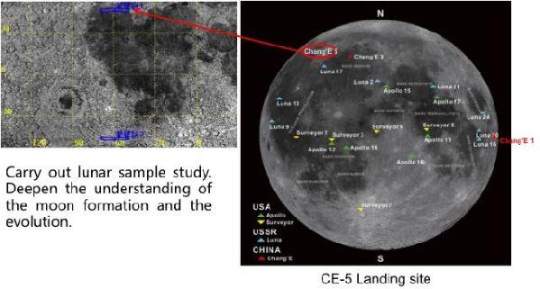 劉繼忠在大會報(bào)告中透露,將為中國取回第一抔月壤的嫦娥五號將于今年年底由長征五號運(yùn)載火箭發(fā)射,它將著陸在月球正面呂姆克山脈,同時(shí)開展相應(yīng)的科學(xué)研究。呂姆克山脈位于月球正面西北部。