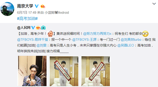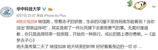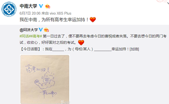 人民網特摘錄了部分名校對考生的寄語,祝福高考,為夢想加油!