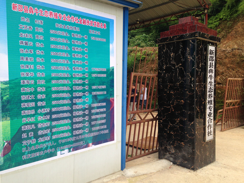 犇牛生態(tài)養(yǎng)殖專業(yè)合作社簽約的岱水村土地,是多年不用的荒山荒坡,簽約利用后使土地明顯增值。合作社基地的場長由岱水村黨總支書記擔任,其身份對貧困戶等村民的動員力、號召力強。用工方面,基地有長期工6人、臨時工100多人,解決了一批農(nóng)村閑置勞力穩(wěn)定就業(yè)。農(nóng)民信奉眼見為實。一位今年66歲的村民開始對合作社持反對態(tài)度,在事實面前他很快轉(zhuǎn)變看法,以一畝多土地入股,并在基地做臨時工,一下子拿到兩項收入的他十分滿意,說比過去強多了。赤水坡村一村民一直關(guān)注岱水村合作社,過一段就跑來看貼在墻上的收入表,見村民一畝地由50元不斷上漲直至300元,他終于下決心,于今年6月2日以兩畝土地入股。