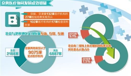 “目前,京津冀132家醫(yī)療機(jī)構(gòu)27項(xiàng)檢驗(yàn)結(jié)果實(shí)現(xiàn)互認(rèn),102家醫(yī)療機(jī)構(gòu)有17項(xiàng)檢查資料共享。北京與津冀地區(qū)實(shí)現(xiàn)醫(yī);フJ(rèn)、互聯(lián)、互通,僅京冀兩地就互認(rèn)了9075家定點(diǎn)醫(yī)療機(jī)構(gòu),其中北京2188家,河北6887家。2016年北京市二級(jí)以上醫(yī)療機(jī)構(gòu)出院患者中,河北患者人數(shù)占比從2013年的9.1%下降到7.5%,京冀醫(yī)療協(xié)同發(fā)展成效初顯!北本┦行l(wèi)計(jì)委委員、新聞發(fā)言人高小俊介紹。