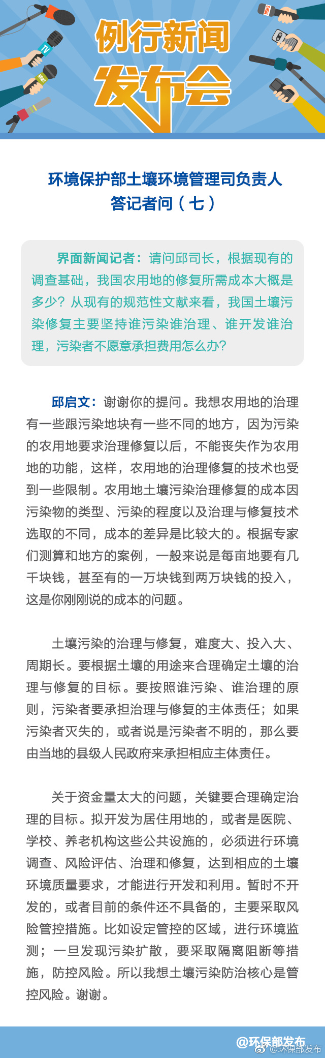 中新網(wǎng)6月21日電 據(jù)環(huán)境保護部宣傳教育司官方微博消息,環(huán)保部土壤環(huán)境管理司司長邱啟文今日在環(huán)保部發(fā)布會上強調(diào),擬將被污染農(nóng)用地開發(fā)為居住用地,或者是醫(yī)院學(xué)校、養(yǎng)老機構(gòu)等公共設(shè)施的,必須進行環(huán)境調(diào)查、風(fēng)險評估、治理和修復(fù),達到相應(yīng)的土壤環(huán)境質(zhì)量要求,才能進行開發(fā)和利用。