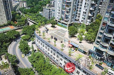 記者探訪:這條路實(shí)為南岸區(qū)南濱路聚豐江山里小區(qū)道路,位于該小區(qū)3棟附近。重慶晚報(bào)記者看到,屋頂公路寬約10米,與樓下往彈子石方向的主干道海棠溪新街呼應(yīng),靠樓的一側(cè)是小區(qū)車(chē)庫(kù)出入口,遠(yuǎn)觀有種樓上樓下皆有路的感覺(jué)。小區(qū)一位保安表示,這條路的下面是小區(qū)的車(chē)庫(kù),車(chē)庫(kù)下是商鋪。