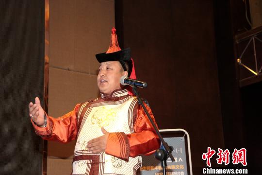 圖為正在內蒙古呼和浩特市舉辦的第二屆澳大利亞原住民和中國蒙古族文化研究國際研討會上,內蒙古師范大學老師斯琴畢力格向中外學者展示蒙古族長調!≮w永厚 攝