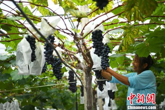 6月24日,重慶西彭鎮(zhèn)真武宮村栽種的大片葡萄已進(jìn)入成熟季,當(dāng)?shù)氐孽r果自采銷售模式吸引不少主城區(qū)的市民前來觀光旅游并入園采摘。當(dāng)日,第四屆西彭葡萄采摘季正式啟動(dòng)迎客。據(jù)悉,西彭鎮(zhèn)真武宮村是以鮮果采摘為載體的休閑農(nóng)業(yè)體驗(yàn),全村共有26家農(nóng)業(yè)企業(yè),目前種植精品葡萄規(guī)模達(dá)1800余畝,年產(chǎn)值3500萬元,優(yōu)質(zhì)苗木種植規(guī)模500余畝,精品草莓200畝,水產(chǎn)養(yǎng)殖300畝。2016年村集體收入達(dá)110萬元,農(nóng)民年人均收入2萬元。