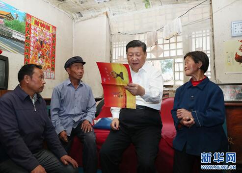 6月21日,中共中央總書記、國家主席、中央軍委主席習近平到山西考察調(diào)研。這是習近平來到忻州市岢嵐縣趙家洼村看望貧困村民劉福有。新華社記者 龐興雷 攝