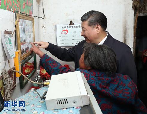 6月21日,中共中央總書記、國家主席、中央軍委主席習近平到山西考察調(diào)研。這是習近平來到忻州市岢嵐縣趙家洼村看望貧困村民王三女。新華社記者 龐興雷 攝