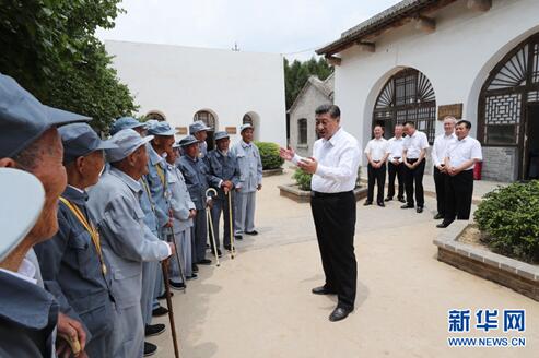 6月21日,中共中央總書記、國家主席、中央軍委主席習近平到山西考察調(diào)研。這是習近平來到興縣晉綏軍區(qū)司令部舊址,同當年在晉綏邊區(qū)參加對敵斗爭的老戰(zhàn)士們親切交談。新華社記者 龐興雷 攝