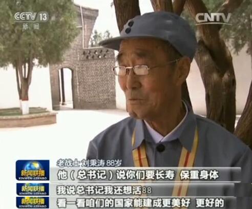 不忘初心、繼續(xù)前進,在呂梁市興縣,總書記還瞻仰了晉綏邊區(qū)革命紀念館,參觀了晉綏邊區(qū)政府、晉綏軍區(qū)司令部舊址,并同晉綏邊區(qū)的老戰(zhàn)士老同志代表親切交談。88歲的劉秉濤老人見到總書記時,行了個莊嚴的軍禮。