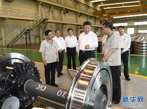6月22日,中共中央總書記、國家主席、中央軍委主席習近平在山西太原考察企業(yè)。這是習近平在太原重工軌道交通設(shè)備有限公司車輪車間考察。新華社記者 李學仁 攝