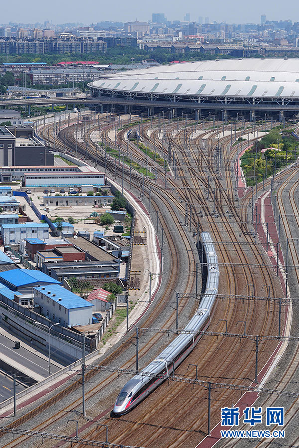 6月26日,“復(fù)興號(hào)”G123次列車(chē)駛出北京南站。當(dāng)日,中國(guó)標(biāo)準(zhǔn)動(dòng)車(chē)組“復(fù)興號(hào)”在京滬高鐵兩端的北京南站和上海虹橋站雙向首發(fā),分別擔(dān)當(dāng)G123次和G124次高速列車(chē)!皬(fù)興號(hào)”是由中國(guó)鐵路總公司牽頭組織研制、具有完全自主知識(shí)產(chǎn)權(quán)、達(dá)到世界先進(jìn)水平的中國(guó)標(biāo)準(zhǔn)動(dòng)車(chē)組。新華社記者邢廣利攝