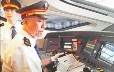 “復(fù)興號(hào)”駕駛員正在做出車前的準(zhǔn)備工作。光明日?qǐng)?bào)記者 郭俊鋒攝/光明圖片