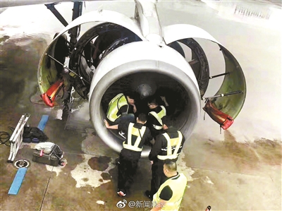 北京青年報(bào)記者27日下午4時(shí)許查詢發(fā)現(xiàn),原本計(jì)劃當(dāng)天中午12點(diǎn)45分起飛的航班依舊處于延誤狀態(tài)。而從許多乘客傳來(lái)的照片中可以看到,飛機(jī)旁停放了多輛包括警車(chē)在內(nèi)的車(chē)輛,飛機(jī)左翼下方的發(fā)動(dòng)機(jī)蓋處于打開(kāi)狀態(tài),有多位工作人員正在對(duì)發(fā)動(dòng)機(jī)進(jìn)行檢查維修。