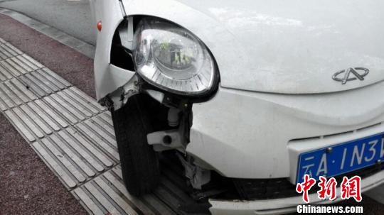 圖為肇事的共享電動(dòng)汽車。 鐘欣 攝