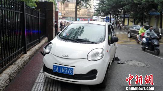 圖為肇事的共享電動(dòng)汽車!$娦 攝