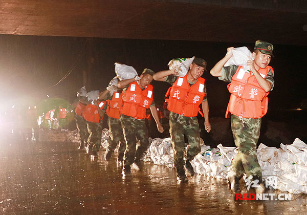紅網(wǎng)長沙7月1日訊(通訊員 楊韜 吳建波 記者 劉怡斌)暴雨!大暴雨!特大暴雨!橙色預(yù)警!紅色預(yù)警!長沙、益陽、懷化、湘西、岳陽、邵陽等地接連告急!防汛應(yīng)急響應(yīng)提升至Ⅱ級!6月以來,全省平均降雨量已破歷史極值。自6月30日起,武警湖南省總隊(duì)近兩千名兵力兵分多路、持續(xù)作戰(zhàn),截至目前已累計(jì)轉(zhuǎn)移群眾5000余人,加固河堤近20公里,封堵管涌等險(xiǎn)情10余處。