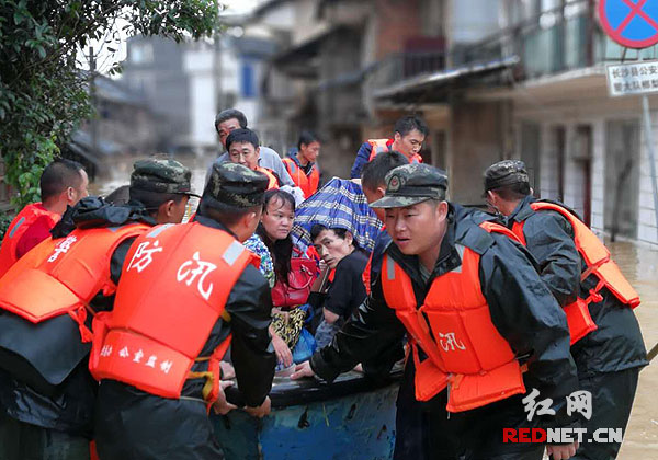 1日下午15時(shí)30分,長春垸新橋河鎮(zhèn)烈公橋段河堤又密集出現(xiàn)十二處小管涌,救災(zāi)官兵來不及洗去臉上的泥土,又投入到緊張的救援工作中,兩個(gè)小時(shí)候,十余處險(xiǎn)情全部被排除。6月30日下午18時(shí),暴雨侵襲下的湘西沅江水位持續(xù)上漲,瀘溪縣境內(nèi)浦市至武溪段全面超警。武警湘西支隊(duì)115名官兵連夜奮戰(zhàn)在一線,全力抗擊洪峰。在武溪鎮(zhèn)五里洲村,截至目前,該支隊(duì)共疏散、轉(zhuǎn)移群眾1000余人,排查化解各類安全隱患6起,裝填沙袋2000多袋,打好木樁500余個(gè),幫助轉(zhuǎn)移財(cái)產(chǎn)物資50余萬元。1日凌晨5時(shí),洪水漫灌懷化辰溪縣城,城區(qū)到處一片汪洋,全域進(jìn)入防汛1級應(yīng)急響應(yīng)。懷化支隊(duì)50余名救援官兵迅速馳援,利用自帶皮劃艇和征用民用木船等手段,深入老城區(qū)中心轉(zhuǎn)移受困群眾800余人。救援中,一名高燒兩天多的4歲女孩被困3樓家中,該支隊(duì)參謀長王良華帶一艘皮劃艇避開縱橫交錯的架空電線,成功將其轉(zhuǎn)移至附近醫(yī)院。