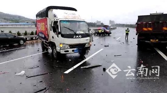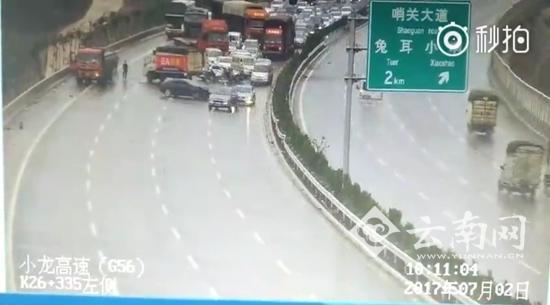 云南網(wǎng)訊(記者 熊強(qiáng))近日,云南部分州市迎持續(xù)降雨天氣,雨天行車需注意安全。7月2日上午10點左右,昆曲高速軍馬場路段發(fā)生6車相撞事故,造成3人輕傷。隨后,昆曲大隊對該路段采取臨時交通管制,中午12點左右,事故處理完畢,交通得以恢復(fù)。
