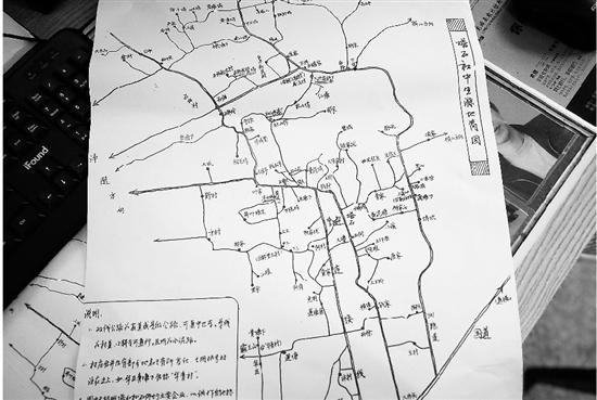 彭老師告訴記者,這份手繪家訪地圖是學(xué)校的科學(xué)老師藍(lán)松林做的。