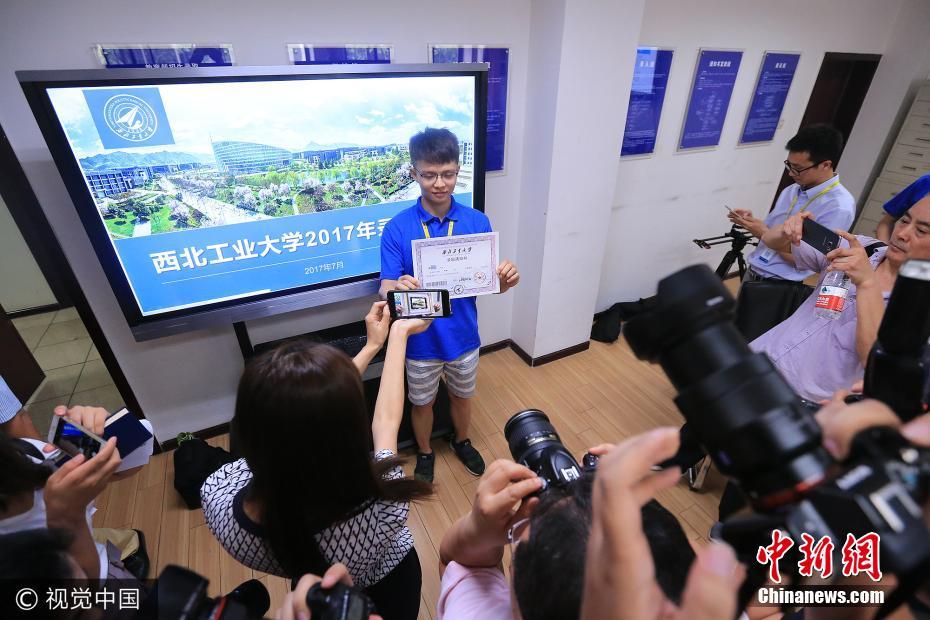 2017年7月4日下午5時(shí),中國(guó)第一封AR錄取通知書(shū)從陜西西北工業(yè)大學(xué)發(fā)出。圖片來(lái)源:視覺(jué)中國(guó)