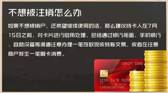 招商銀行工作人員提醒,如果持卡人仍需要使用該賬戶,可于7月15日前存款或轉(zhuǎn)賬。