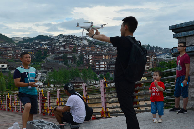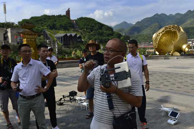 此次報(bào)名參加“空中瞰茅臺(tái)”活動(dòng)的,不僅有從四面八方趕來的貴州旅游在線的忠實(shí)攝友,還有十余位貴州領(lǐng)空俱樂部的大疆無人機(jī)攝影師。在1915廣場(chǎng)上,這些新鮮玩意兒吸引來了大量市民與外地游客圍觀!斑@個(gè)飛機(jī)真酷!是拿來拍照的吧?”市民余劉先生忍不住好奇詢問。