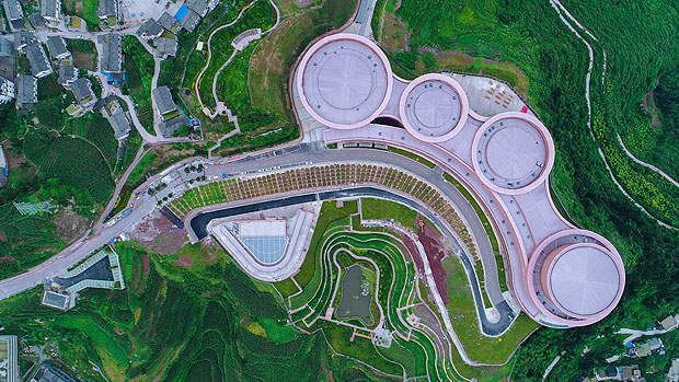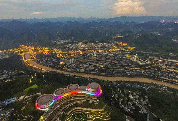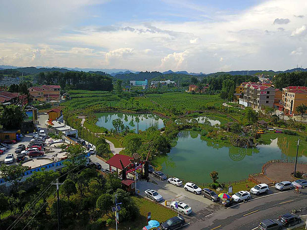 在仁懷市壇廠鎮(zhèn),當(dāng)?shù)卣鶕?jù)地勢(shì),建造了一個(gè)占地300多畝的八卦圖形狀的鄉(xiāng)村旅游園區(qū),吸引遠(yuǎn)近游客前往觀光。