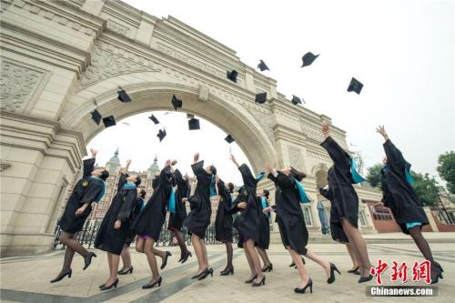 資料圖:畢業(yè)生們在校門高呼“我們畢業(yè)了”。莫小布 攝