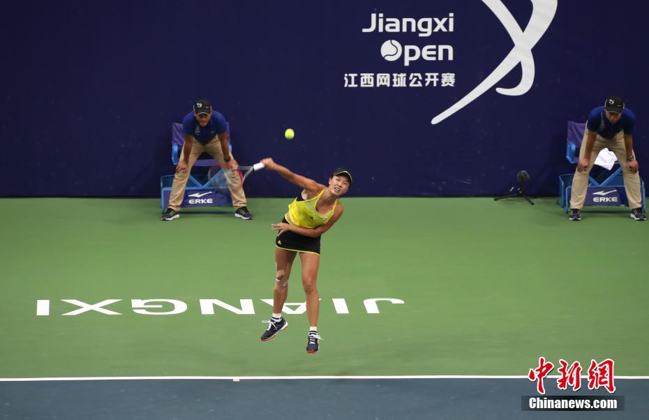 7月30日,中國女網(wǎng)名將彭帥在賽場上奮力拍球。當天,2017江西網(wǎng)球公開賽決賽在南昌打響,中國女網(wǎng)名將彭帥以6比3、6比2橫掃日本選手日比野菜緒,奪得賽事冠軍,同時這也是她第二次在南昌登頂。 中新社記者 劉占昆 攝 -