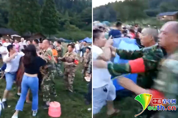 該游客稱,雙方展開沖突的是因?yàn)榫皡^(qū)收帳篷費(fèi),“大家進(jìn)景區(qū)之前沒有說要收帳篷費(fèi)的,但是讓他們出示相關(guān)的收費(fèi)文件和工作證,每個(gè)人都沒有,然后我們就拒絕付錢,他們就來砸我們帳篷和物品”。