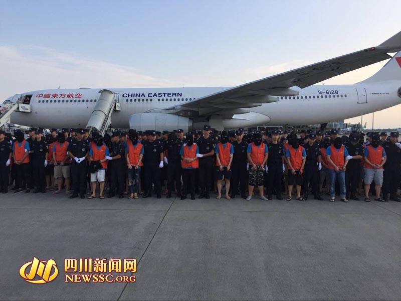 四川新聞網(wǎng)成都8月3日訊(記者 李春雨 攝影報道)8月3日傍晚,58名涉嫌通訊詐騙犯罪的嫌疑人被四川警方從印度尼西亞押送回國。