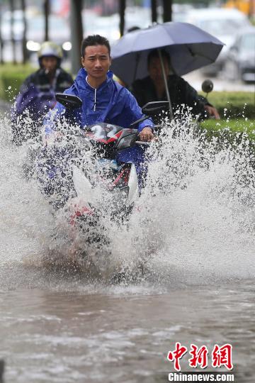 8日上午,江蘇多地迎來強降雨天氣。圖為南京市區(qū)車輛在積水道路上駛過!°蟛āz