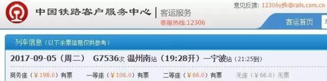 溫州南至寧波最低只要66元 二等座相當(dāng)于打6.8折