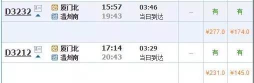 不光是溫州南至寧波段,沿海高鐵廈門(mén)北至寧波的部分車(chē)次,寧波至杭州、上海方向部分D字頭動(dòng)車(chē)票,也從9月開(kāi)始出現(xiàn)折扣票。其中,廈門(mén)北至寧波的D3212次,折后二等座票價(jià)為221元(通常為278元),一等座353元(通常為445元),相當(dāng)于打8折;D3232次的二等座為265元,一等座424元,相當(dāng)于打9.5折。而寧波至廈門(mén)北的動(dòng)車(chē)票暫時(shí)沒(méi)有折扣。