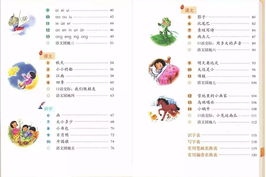 今年新入學(xué)的小學(xué)生拿到語(yǔ)文課本后,打開書,是這樣的: