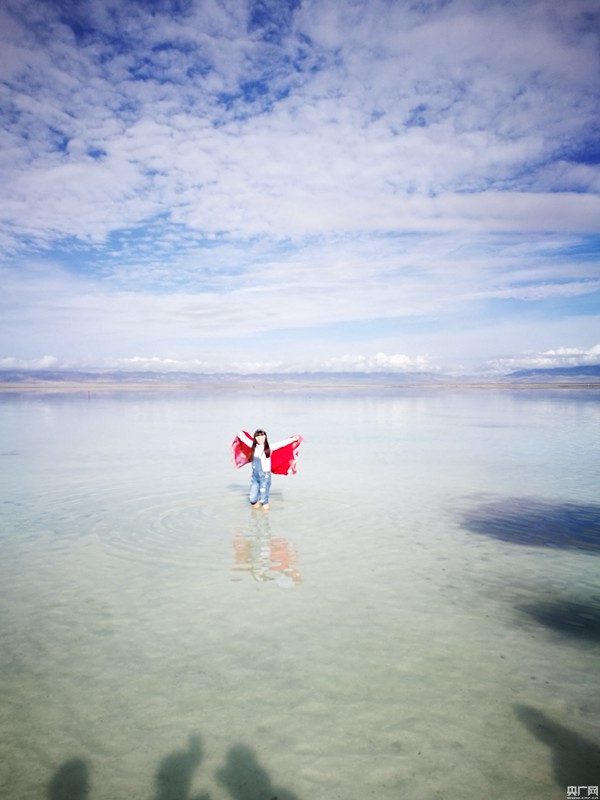 似真似幻,攝人心魄的美讓兩岸媒體記者無不發(fā)出贊嘆,紛紛拿起相機(jī)不斷按動(dòng)快門。臺(tái)灣中評(píng)社記者林谷隆告訴記者,茶卡鹽湖是他一直期待來的地方,看到湖面上明凈般的倒影,真的好似一面天空之鏡,尤其當(dāng)乘坐觀光小火車欣賞沿路風(fēng)景時(shí)看到有新人在鹽湖中央拍婚紗照,他覺得以這樣的方式互訴衷腸非常特別,一會(huì)終身難忘。
