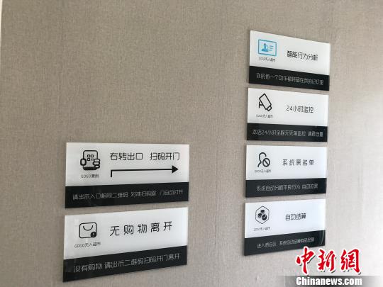 圖為無人超市內(nèi)的指示牌。 岳依桐 攝