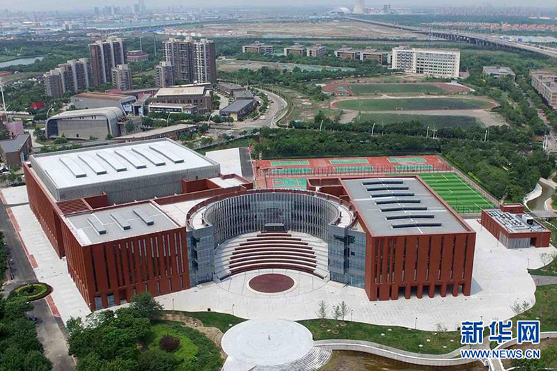 這是新建成的天津科技大學體育館全景(6月21日攝)。