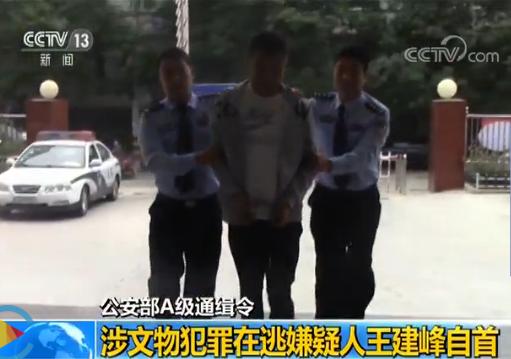 王建峰系陜西省咸陽市淳化縣公安機(jī)關(guān)正在偵辦的一起重大文物案件的主犯之一。2016年11月10日,陜西省淳化縣公安機(jī)關(guān)對王建峰作出刑事拘留決定并進(jìn)行網(wǎng)上追逃,此后開展了大量摸排、研判、查緝等工作,但一直未能抓獲。7月31日公安部發(fā)布A級通緝令通緝10名重大文物犯罪逃犯后,淳化縣公安機(jī)關(guān)進(jìn)一步加大緝捕力度,同時(shí)安排民警做其家屬思想工作,督促其主動投案自首,爭取從寬處理。在公安機(jī)關(guān)的全力緝捕和工作施壓下,王建峰向陜西省淳化縣公安機(jī)關(guān)投案自首。
