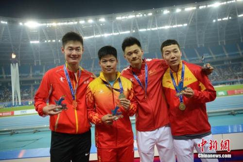 23歲的謝震業(yè)本屆全運會收獲三枚金牌,成為全運會歷史上跑步項目的首個“三冠王”。中新社記者 武俊杰 攝