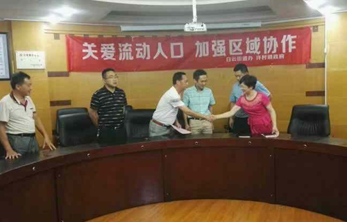 央廣網(wǎng)南昌9月9日消息(記者于聞 通訊員 宋振華)江西省婺源縣許村鎮(zhèn)與浙江省東陽市白云街道辦開展流動人口服務(wù)與管理雙向協(xié)作。