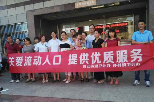 許村鎮(zhèn)衛(wèi)計辦工作人員、流動黨員支部書記倪永泉和計生協(xié)會會長胡紅梅組織56個育齡婦女到白云街道醫(yī)院接受免費健康體檢。